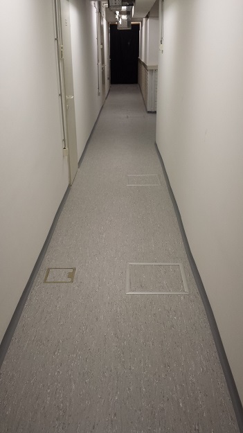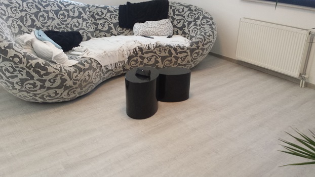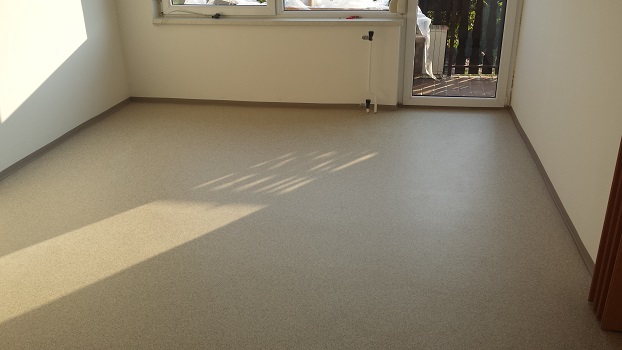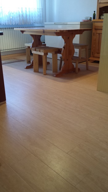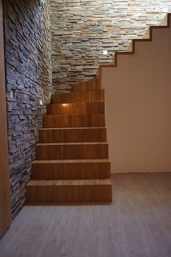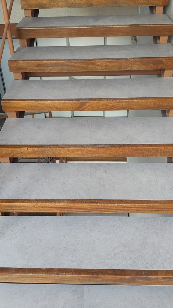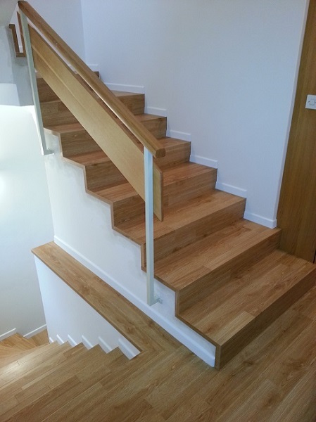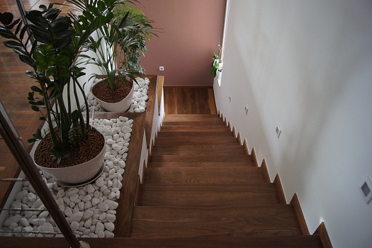 Kombinacija PVC poda in z lesom obloženih stopnic |